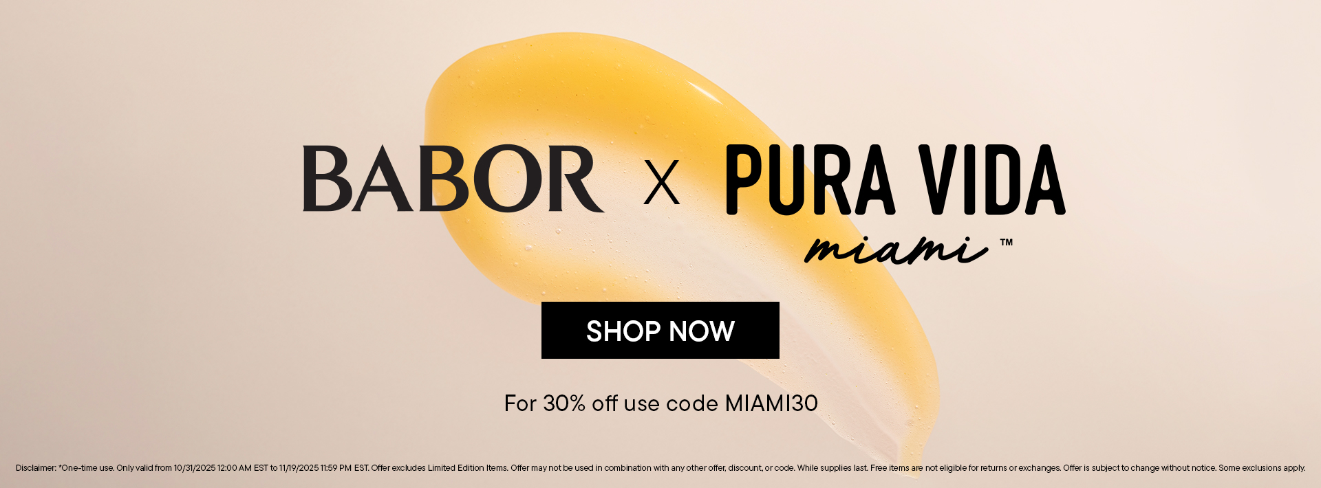 UNBOX YOUR RADIANCE A SHARED MISSION: WELLNESS INSIDE & OUT Pura Vida Miami and BABOR believe beauty goes beyond the surface. This exclusive collaboration brings together BABOR’s professional-grade skincare with Pura Vida Miami’s lifestyle of effortless, intentional wellness.Together, we’re celebrating the connection between how you care for your skin and how you care for your self. Whether it’s beachside or bedside, this curated ampoule trio is your new ritual for radiant, resilient skin.As the ampoule pioneer, BABOR set the standard for high-performance, precision skincare. Each single-use vial delivers potent, targeted ingredients for instant, visible results. More effective than a serum, ampoules are a game-changer for skin and a staple in every professional routine.Just like how Pura Vida Miami serves up nutritious and delectable dishes to fuel your day, BABOR’s ampoules deliver daily transformation for your skin—one moment, one treatment at a time. It’s about creating space to feel good, look glowing, and move through life with confidence.
