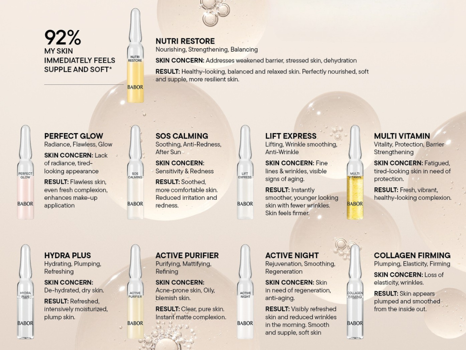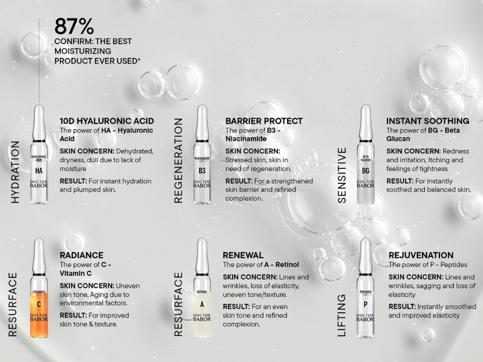 + Tailored expertise: Leveraging BABOR’s legacy as the ampoule pioneer, delivering targeted solutions for every skin need.